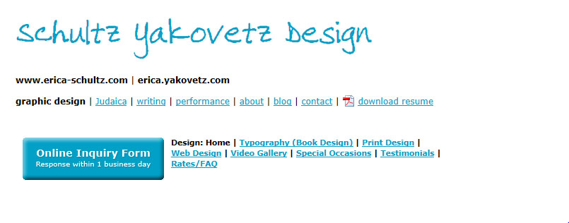 When I last rebuilt erica-schultz.com back in 2012, I decided to incorporate a custom webfont in my Design and Judaica sections. In the interest of cross-browser compatibility, I used FontSquirrel’s free Webfont Generator to export EOT, SVG, and WOFF files, which I then called in my CSS @font-face declaration.