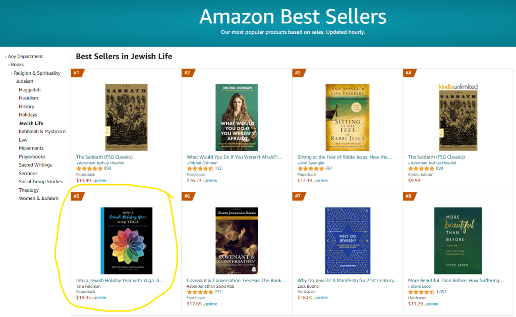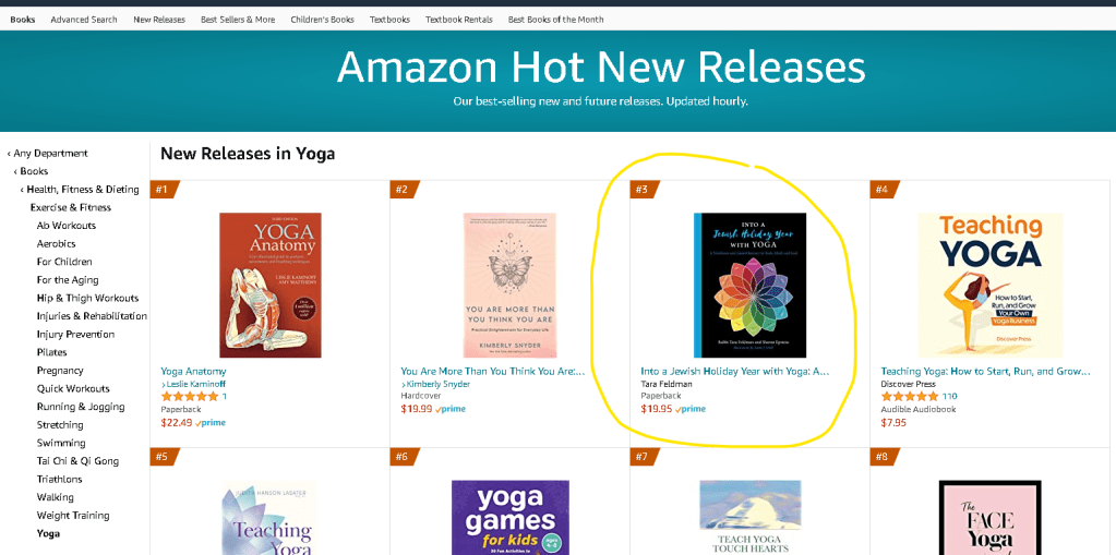 By the afternoon of November 1, the book had hit #3 on Amazon’s “Hot New Releases” in Yoga, and #5 on their Best Sellers list in the Jewish Life category… nestled in between Rabbi Abraham Joshua Heschel and Rabbi Lord Jonathan Sacks. This is incredibly august company to be in.