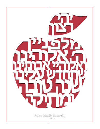 I had a request earlier in October from an Etsy customer in Brooklyn who wanted a custom print created of the phrase בשבילי נברא העולם (“The world was created for me“), with “for me” in orange “to match Moully’s ‘Orange Socks’.”
